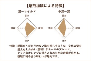 中浅煎りでは、クリアでみずみずしいオレンジの甘さと爽やかな酸味が際立ち、軽やかでマイルドな印象に。